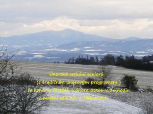 Únorové setkání seniorů s tradičním únorovým programem se uskuteční ve čtvrtek 5.2.2026 v 16:00 v malém sále kulturního domu v Těškovicích.