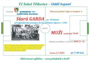 Oddíl kopané vás zve na přátelské utkání týmu "Staré Gardy" po 30ti letech od legendárního postupu do okresního přeboru Opava v r. 1992 s aktuálním fotbalovým týmem. Zápas se odehraje v sobotu 2.7. v 17:00 v místním multifunkčním sportovním areálu.