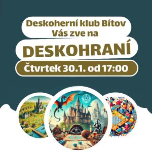 Deskoherní klub Bítov Vás zve na Deskohraní ve čtvrtek 30.1. od 17:00 ve velkém sále Obecního domu v Bítově.