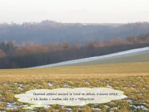 Březnové setkání seniorů se uskuteční ve čtvrtek 6. března od 16:00 v malém sále Kulturního domu v Těškovicích.