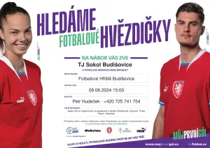 TJ Sokol Budišovice organizuje v rámci Dne dětí nábor nových fotbalových talentů. Akce se uskuteční 8.6.2024 v 15:00 na fotbalovém hřišti v Budišovicích.