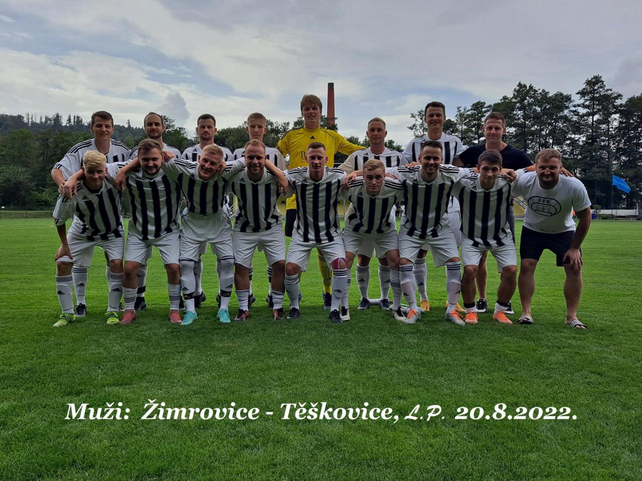 K prvnímu utkání podzimu jsme zajížděli na hřiště Žimrovic. První šanci utkání měli domácí ve 3´, kdy končí jejich akce středem hřiště nad brankou Tomáše. V 8´ po autu Vladimíra Šenka centruje Danek Krayzel, ale nabíhající Dalibor Illík mine míč. V 10´ končí přímý kop domácích mimo Tomášovy tyče. V 17´ zakončují domácí rychlý break střelou těsně naší branky. Ve 20´ vybojoval Dalibor Illík míč na pravé straně a vybídl ke skórování Vladimíra Šenka, který jasnou TUTOVKU „zazdil“ slabou střelou do rukavic domácího gólmana. Ve 21´ zabíhá na dlouhý pas za obranu domácích Matěj Krayzel, hlavou přehlavičkuje vybíhajícího gólmana, ale domácí kapitán včas dobíhá míč směřující do prázdné branky. Ve 25´ vysune Tomáš Rek zabíhajícího Danka Krayzla, ale ten z pravé strany zakončuje mimo domácí branku. Ve 30´ zatáhne míč po pravé straně Matěj Krayzel, vybídne zpětnou přihrávkou volného Vladimíra Šenka, ale jeho další jasnou TUTOVKU domácí gólman vyráží. Ve 31´ zabíhá po levé straně hřiště za obranu Tomáš Rek, ale jeho střílený centr JEN proletí domácí šestnáctkou. Další střílený centr Danka Krayzla ve 32´ z pravé strany likviduje domácí gólman. Ve 36´ zatáhne míč po pravé straně Vojtěch Binar, ale jeho střela z úhlu končí na boční tyči domácích. Ve 38´ po dlouhém autu domácích z levé strany následuje závar v naší šestnáctce a dorážka na 1:0. Ve 41´ po rohu domácích následuje opět závar v naší šestnáctce, ale jejich tři dorážky v naší brance naštěstí nekončí. V závěru poločasu proletí střílený centr naší obranou, ale zakončení domácí přestřelují Tomášovou brankou.